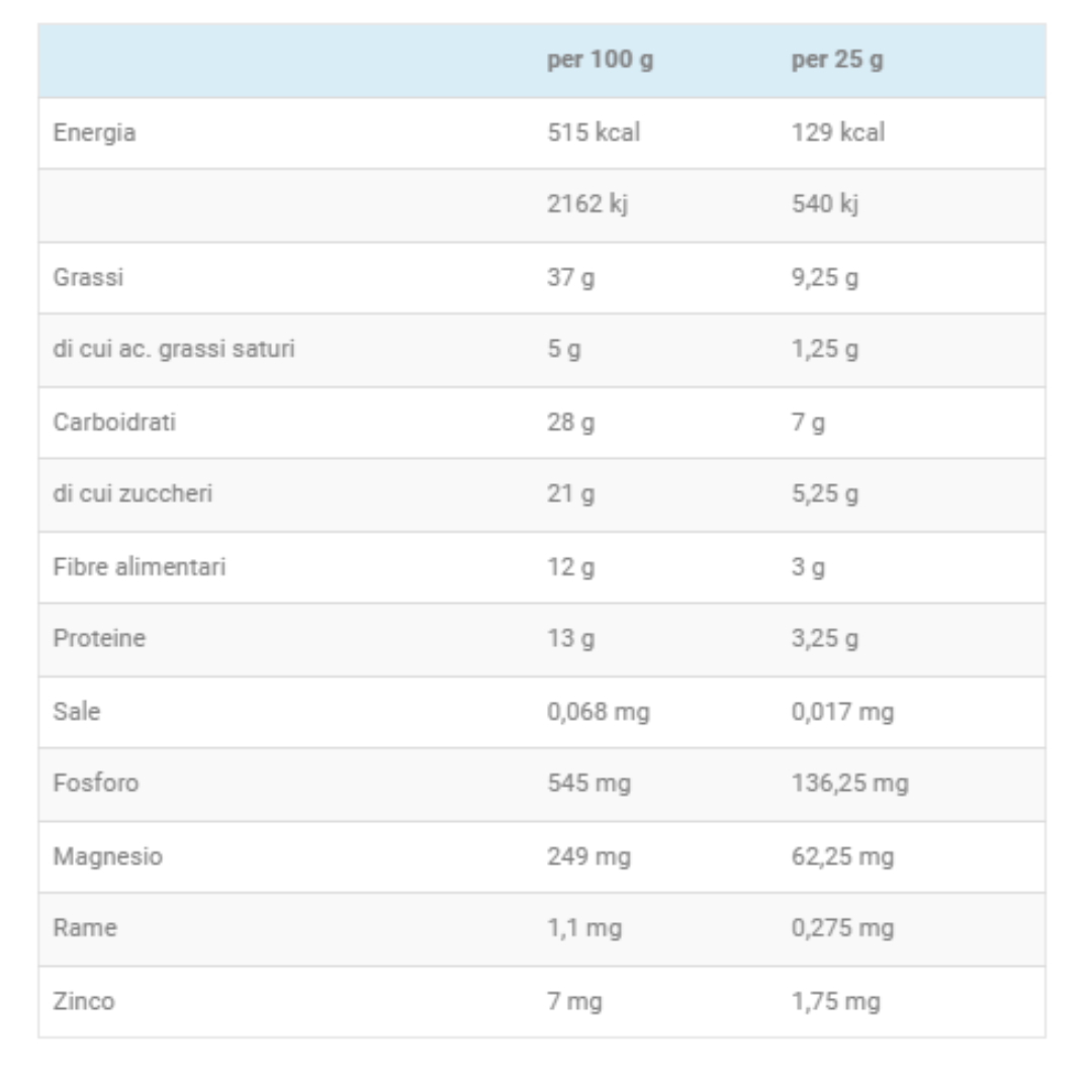 Può contenere tracce di altra frutta a guscio e arachidi.